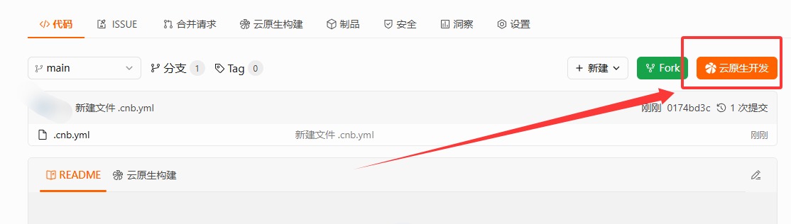 在仓库根目录下创建一个名为 【.cnb.yml】 的文件。这是 CNB 的配置文件。